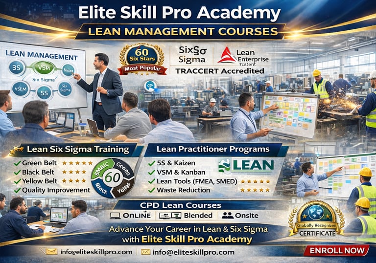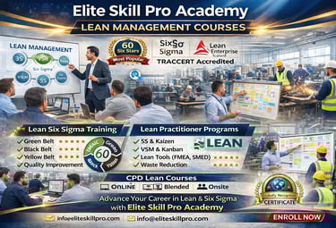 At Elite Skill Pro, our Lean programs blend international best practices with real-world application. Whether delivered online, onsite at client facilities, or at our training center, each course combines: