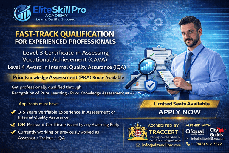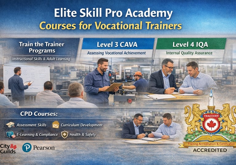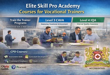At Elite Skill Pro, we provide professional development programs for vocational trainers, assessors, and quality assurance professionals. Our qualifications align with leading awarding bodies such as City & Guilds and Pearson, ensuring international recognition and industry credibility.